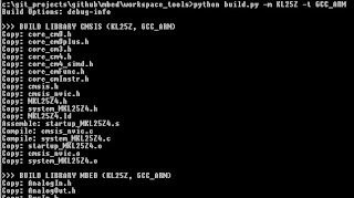 Time to build our own mbed library, type python build.py -m KL25Z -t GCC_ARM in the command line from workspace_tool directory. This should be an output: