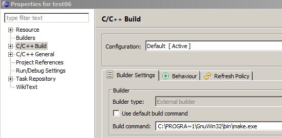 Click on C++ Build and uncheck Use default build command, type there